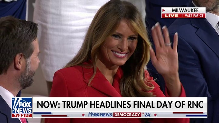 ‘And Melania, thank you very much. You also did something really beautiful. A letter to America calling for national unity. And it really took the Republican Party by surprise. I will tell you, it was beautiful,’ he said.
