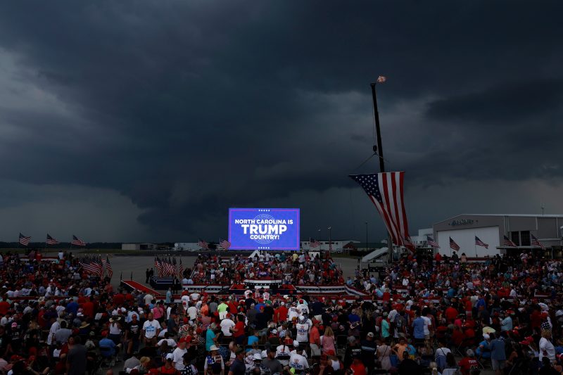 Also mingling with rallygoers as they lined up was Scott Presler, a well-known pro-Trump activist focused on voter turnout. He and another woman were collecting signatures that they said would help independent Cornel West qualify for the ballot in North Carolina.