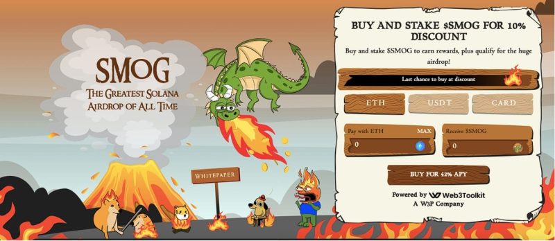 To join the fun, investors need a funded Solana wallet, which can then be spent on $SMOG via the Jupiter DEX aggregator, Birdeye, or MEXC.